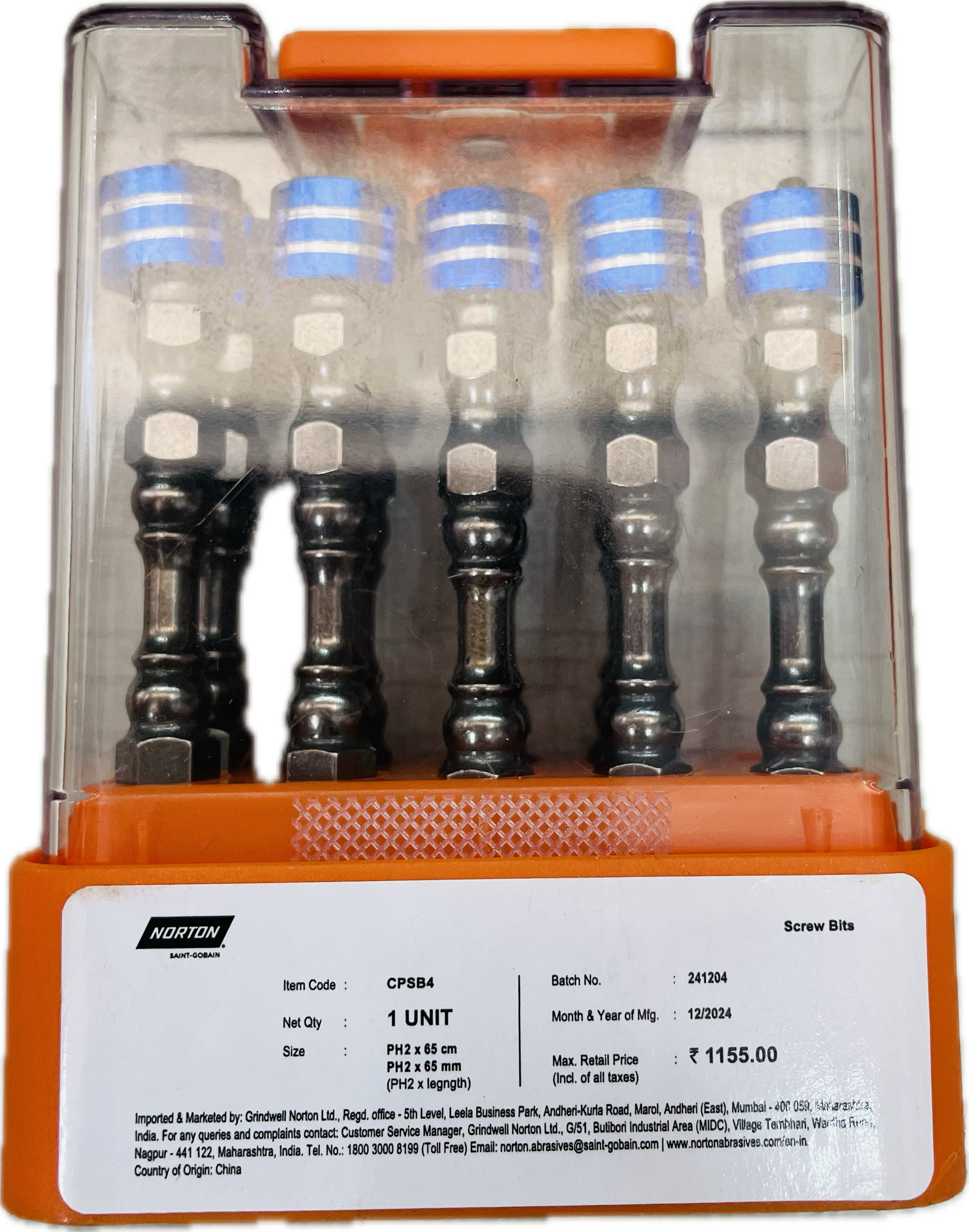 NORTON HIGH TORQUE DOUBLE ENDED MAGNETIC SCREW BIT - PH2 x 65MM (PACK OF 10)